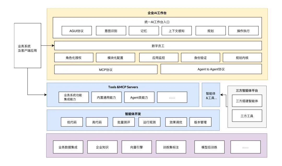 如果说身份决定Agent能不能进企业,记忆决定它能不能理解企业,那么工具与执行决定它能不能创造价值。企业里的效率提升往往来自“少点一次”、“少填一项”、“少开一个系统”。要让 Agent 具备执行力,核心在于标准化的工具接入与稳定的动作编排: