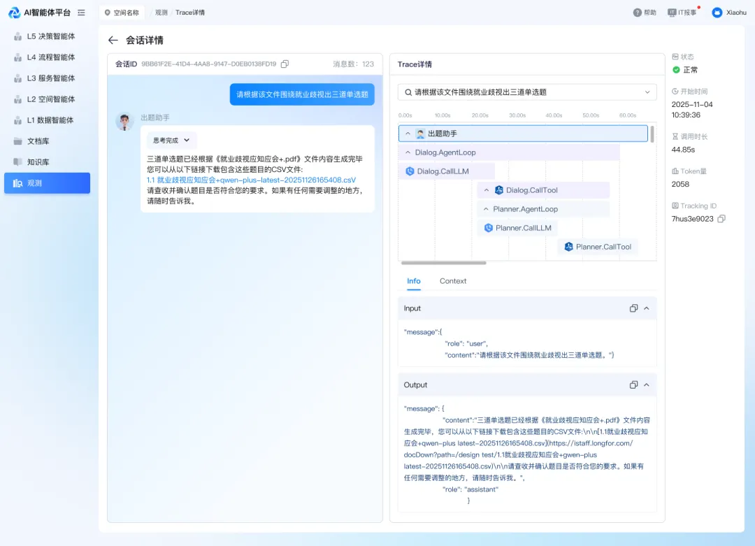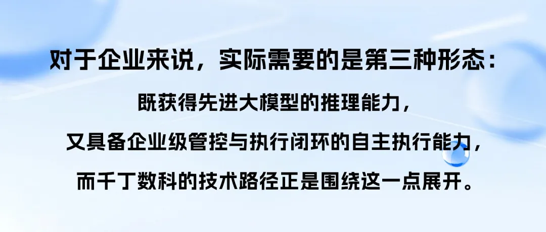 千丁数科的企业级AI Agent以更低侵入性的方式将AI Agent的能力引入企业,形成可观测、可评估、可迭代的交付机制,并借由标准协议与工具生态的成熟,让智能能力在更多系统与流程间产生实际价值。