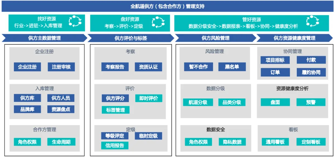 千丁数科的统一的供应商平台,不管是地产、物业还是商业业务,供应商只要注册审核一次,就能在所有业务线复用。系统还会自动盘点资源,比如哪个品类的供应商产能足、哪个评价好…