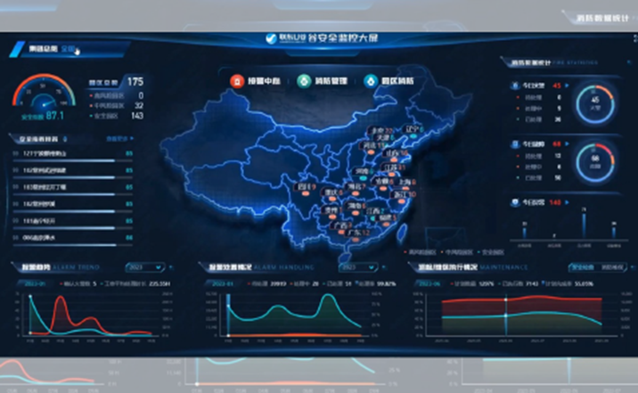 建设集团化管理驾驶舱,全国项目一屏统管。通过智慧消防管理平台+AI慧眼系统+超级工单的深度融合联动,打造安消一体联动平台。可自动告警并生成工单,工单处理提效62.50%,人均管理面积提升1.4倍