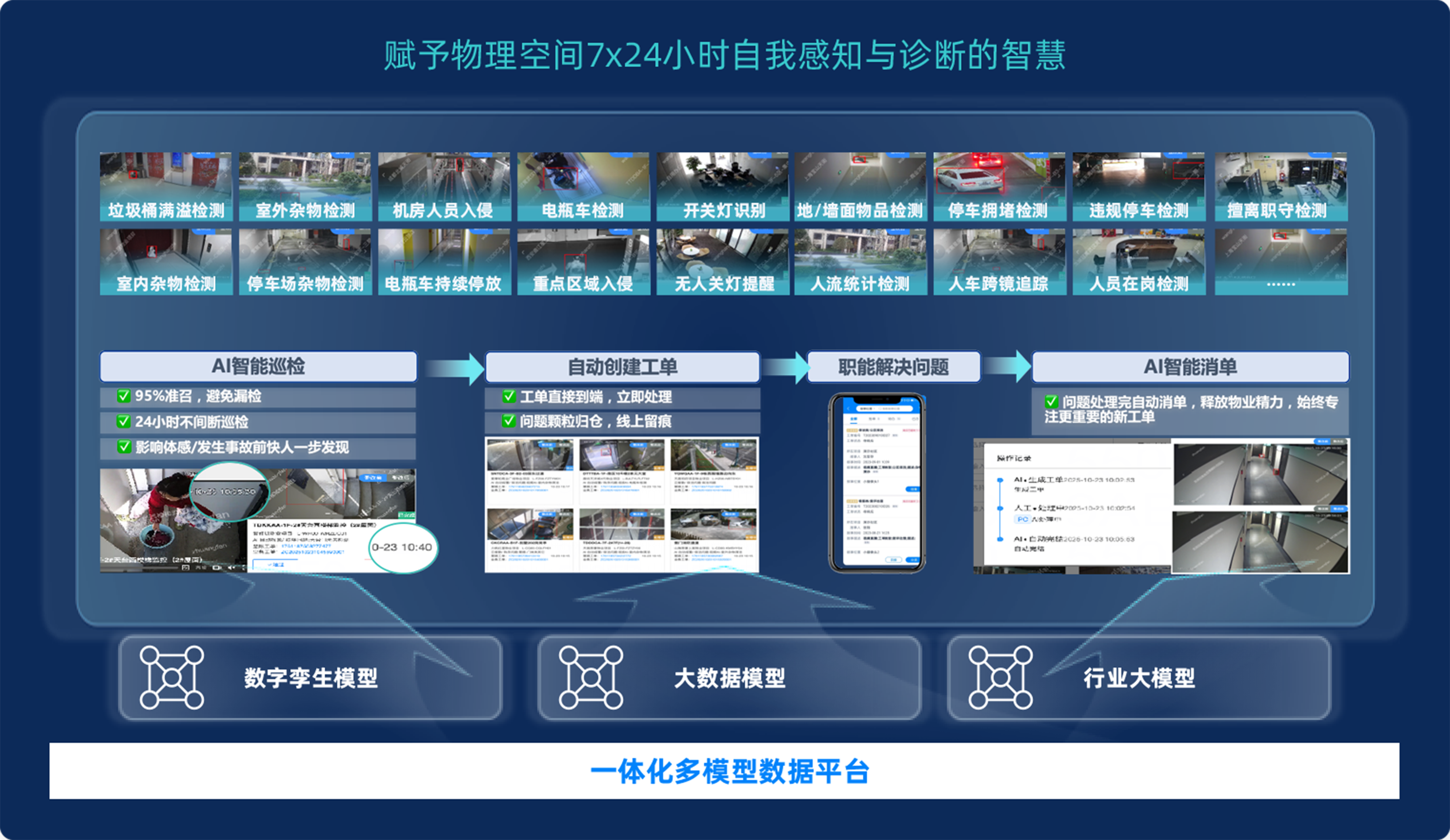 7×24小时AI视觉巡检,融合多模态大模型实现120+场景智能识别,自动生成工单,替代人力,全面提升安全、品质与运营效率